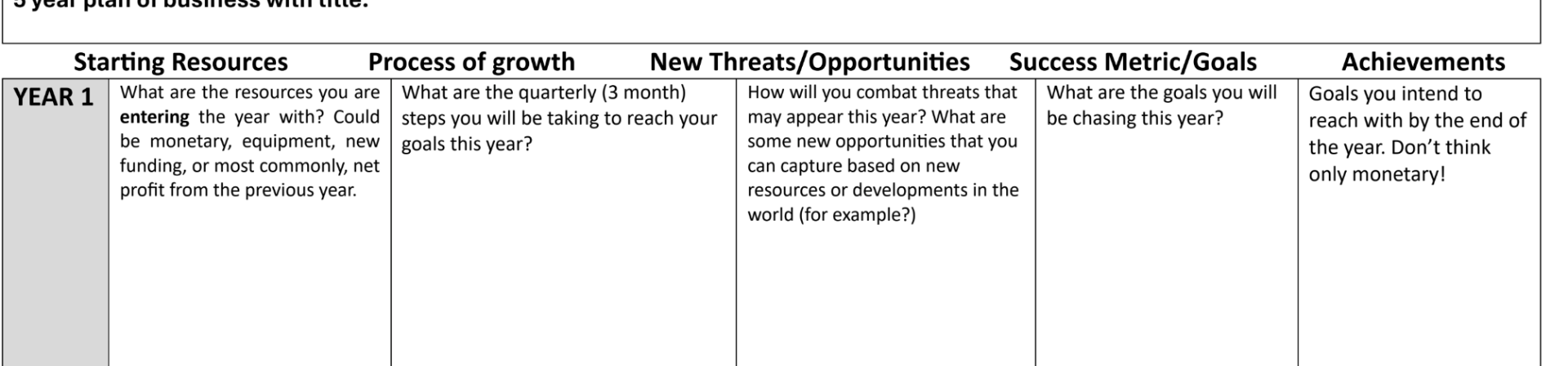 This business plan document (which was previously used in ACPELIA's projects, such as SUCCOMINO), denoted 5 key factors to look out for yearly, which you can see below.